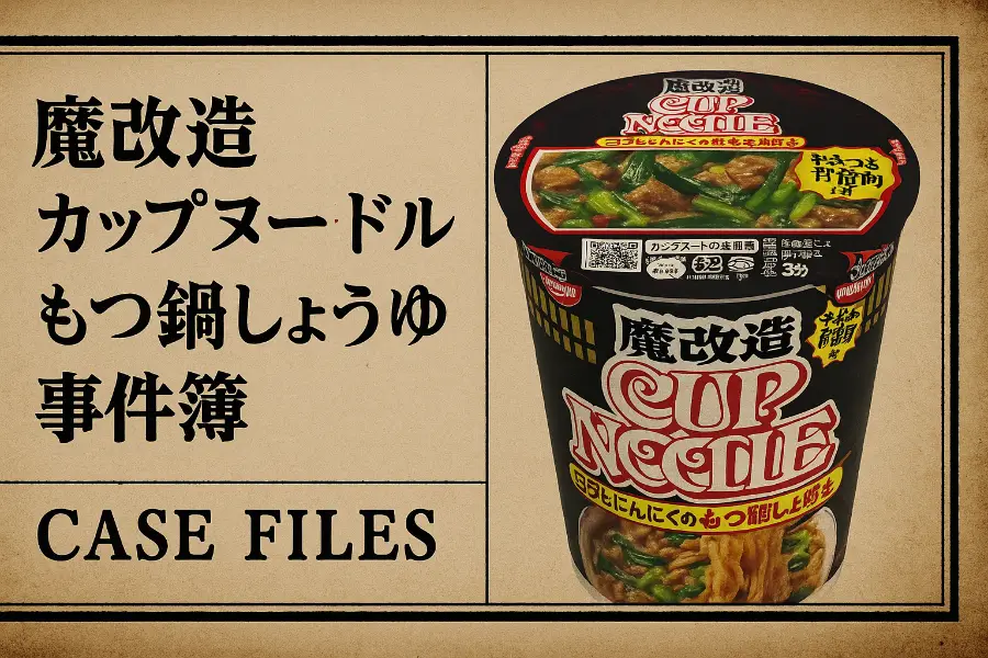 助手よ、じっちゃんの名にかけて今回の事件現場は「魔改造カップヌードル もつ鍋しょうゆ味」だ!2025年9月8日に全国発売されたばかりの“魔改造”シリーズの一員で、あの定番「カップヌードル(しょうゆ)」をベースに、にんにく・ニラ・背脂のコクを追加し...