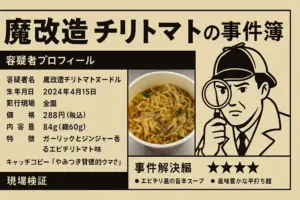 | 容疑者 | カロリー | 犯行手口(味の方向性) | 主な具材 | 公式キャッチコピー |