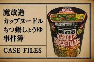 | 容疑者A:醤油(もつ鍋しょうゆ味) | 約384kcal | にんにく+ニラ、背脂、野菜の甘みを効かせた“もつ鍋しょうゆ風” | 謎肉、キャベツ、ニラ、ごま、背脂加工品 | 「背脂にんにくの暴走もつ鍋風」 |